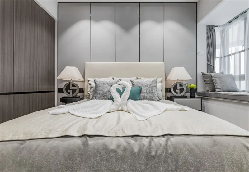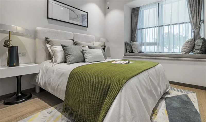 次卧设计同样精致考究,精选舒适柔软的床品和简约装饰画,营造出轻松惬意的睡眠空间。柔和的色调,让人感到宁静和舒缓,为身心带来最佳的休息体验。