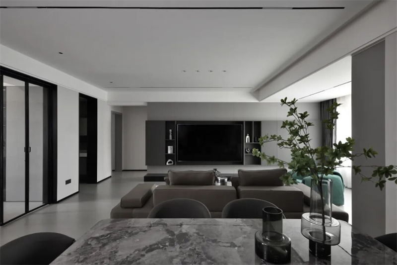 本案以现代极简为设计语言,摒弃冗余装饰,用纯粹的线条、克制的色彩与精炼的材质,构建出一个静谧而有力量的空间。黑白灰为主调,辅以一抹绿意点缀,既体现秩序之美,又不失温度与呼吸感。从空间布局到细节处理,每一处都遵循“少即是多”的原则,让居住回归本质——简洁、从容、自由。